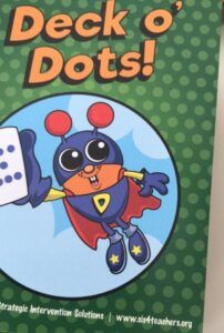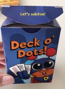Dotson is a part of our Math Mights family. The last of original 10,000 decks of Deck o’ Dots has gone to its new home and so it’s time to welcome our new and improved Deck o’ Dots and our subitizing superhero!