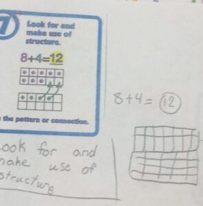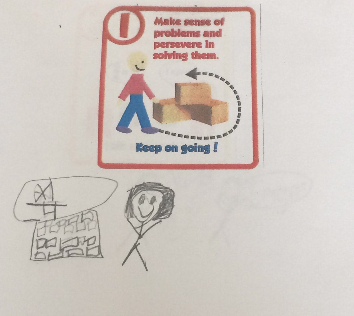 I started thinking about the eight mathematical practice standards that Emma’s teacher was so purposefully involving her students in. They are designed as process standards to help us take the kids deeper into their own understanding of mathematical content. Unfortunately, our SIS consultants tend to report that most teachers are the ones owning these strategies in the classroom. I believe that most students in our schools aren’t challenged enough to bring their understanding of math through the eight mathematical practice standards in order to show how they know what they know. So, how do we get to a point where the students own the eight mathematical practices? Where they are able to do an activity or task and understand which practices they are using?