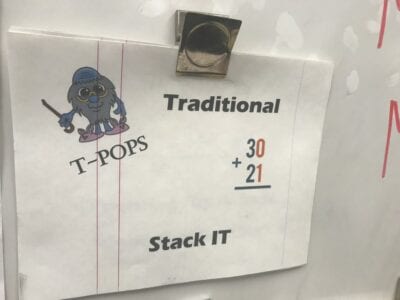 Recently, I met with a group of second grade teachers to work on backward design of some specific math units. We noticed that a big chunk of second grade math is adding and subtracting multi-digit numbers. I asked them: “What would happen if you stopped teaching lesson by lesson through your math book? What if you just taught the “3 Ways Plus the Traditional” strategies with the Math Mights for both addition and subtraction and used the workbook page as problems for practicing the strategies?”