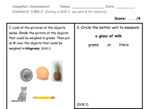 We were in luck! We found a really great resource that had everything we were looking for – for free! CCSS Math Activities (https://www.ccssmathactivities.com/)has great snapshot assessments for each grade level, K-5! Each assessment has about four questions on one standard and also includes the DOK level of each of those questions. It is a great direct match to what our state tests and assessment claims look like.
