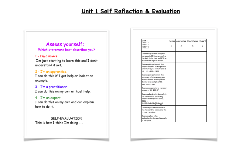 We planned out the summative assessment and the performance tasks, many of which we felt would come at the end of the unit. Teachers are using a summative assessment from Illuminate, so we had them print it off and put it into their assessment binder so they have it, along with a collection of different exit tickets they might have and then the self reflection. Some teachers thought they’d give the self reflection before the unit, sometimes they thought they would prefer to give it after the unit is done to get a perspective of where kids were.