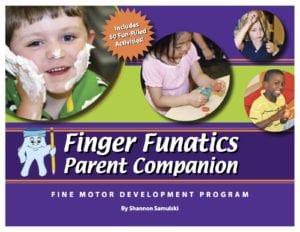 The Finger Funatics Parent Companion was developed because we wanted to do something that would help the parents understand the fine motor development process so they could support it at home. Finger Funatics Parent Companion contained the same activities, but we stripped out the educational jargon and wrote it on a much simpler reading level so it could be universally understood.