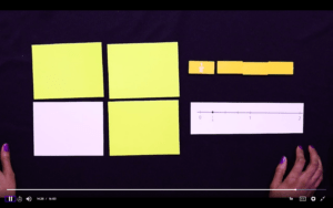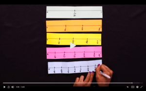 We spend the rest of the show really looking at number lines and figuring out how to fold them so we can make different number lines. We make a number line that’s in halves, fourths, eighths, thirds and sixths. Then we compare those to the fraction number strips that we made in the previous show.