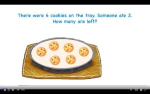 In Kindergarten, we start with our Mystery Math Mistake, which features a delicious word problem about a plate of cookies. If there were 6 cookies on the tray, and someone ate 2, how many were left? You’ll have to be a detective to see if you can figure out where Mrs. Gray made an error while solving this. I bet Jordan and Carly, the two kids on this show, are going to help steer her right!