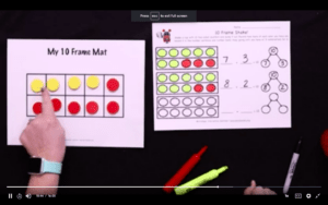 In the last portion of show 312 for Kindergarten, we work on how many more counters are needed to fill the 10-frame. So we show 7 on the 10-frame and students can see that there are three empty. They get to match it to the equation 10 = 7 + 3, 10 = 8 + 2, or 10 = 5 + 5. As students work through this with Mrs Gray, they’ll start to see that they can look at the empty spaces to help them to be successful with this concept.