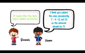 In episode 311 for second grade, we also do a Mystery Math Mistake, bringing in an upside down, all turned around D.C. He’s really struggling with decomposing numbers to make a friendly number, and so we want to see if students can look at this in an inquiry-based way and discover the error. Xanda and Kelly are the students on this show that help us to see where that error might be.