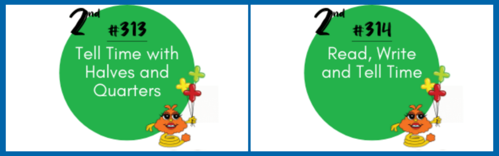In second grade, as we start episode 313, we’re moving away from fractions and using our new knowledge to transition into telling time. For our Mystery Math Mistake, Springling needs everyone’s help! She’s trying to hop on the open number line, like we’ve done in previous shows, but she’s really struggling.