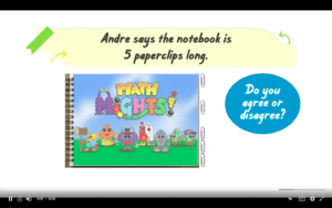 Finally, on the show, we then have a Math Might notebook that some students have measured, but we see that some students’ measurements aren’t lining up. There might be spaces or gaps between the paperclips, sometimes the paperclips overlap, etc. This gives kids an opportunity to see if they’re able to figure out how to measure the notebook most appropriately.