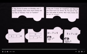 At the end of the show, we really want to make sure again that students are understanding which equation matches the story. Kids need a lot of practice with this concept and so for the extension activity, they’re going to be doing Professor Barble puzzles! These are really fun puzzles where students have to match an equation and a visual model together with the story problem to see if it all makes sense together.