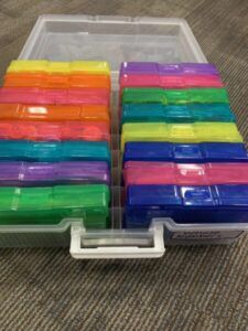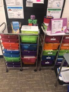 I try to at least put 15 sets of manipulatives in each drawer, assuming you have a class set of 30. This way, even if I’m doing whole-class instruction, students can access the manipulatives in small groups.