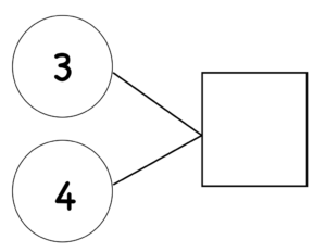 Strong numeracy is foundational for number sense. So, if we moved those same numbers to digits in a number bond, with 3 and 4 on the spokes, and we asked a student to write the total, that would require number sense as the student works with the numbers to find an answer