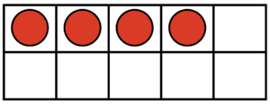 If I had four in a 10-frame and asked the students to add three, they could visualize putting one counter in the top row to make five, and then adding two more to the bottom row of the 10-frame to make seven. No digits were involved, but students can visualize and manipulate the quantities.