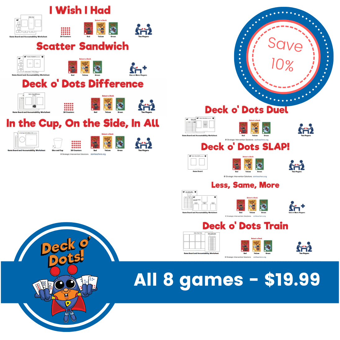 Deck o’ Dots is comprised of three decks that build upon each other in a logical, developmentally appropriate way to allow for differentiation and meeting the needs of all learners.